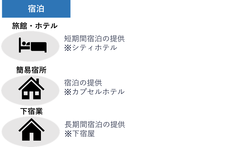 [産業初級]#19 産業の分類 ~⑬宿泊~ 2025-09-16 最終更新日時 : 2025-09-16 kubota28 産業の分類(⑬宿泊) ・宿泊は、「どれぐらい宿泊できるか」で構成されている。 ※宿泊:簡易/短期間/長期間