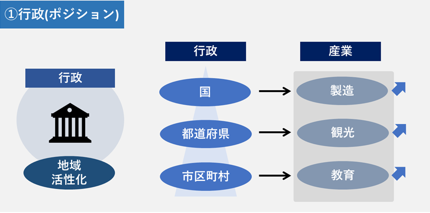 ・行政は、「管轄範囲」によって、「産業の特徴」に違いがある。